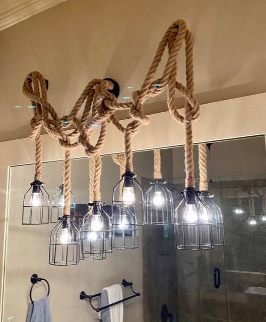 Unique Industrial Vanity Lighting - Rope Pendant Pipe Wrap