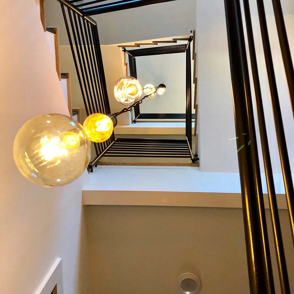 Make your stairway more than just a path from one floor to the next with custom stairwell lighting from Hangout Lighting. If you like multi-pendant clusters or sleek linear chandeliers, you’re in the right place. Each stairway light fixture is built to order with your choice of finishes, cord styles, bulbs and drop lengths. They are perfect for high ceilings and dramatic staircase lighting. Whether you start from scratch or customize one of our customer favorites, every piece is UL-listed, height-adjustable and designed to bring balanced, welcoming light to your home. It’s stairway lighting that works as beautifully as it looks, made just for your space.